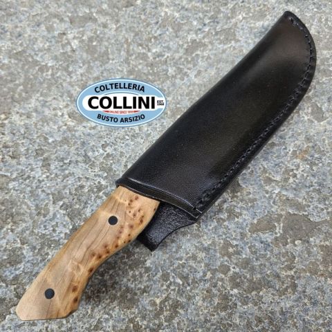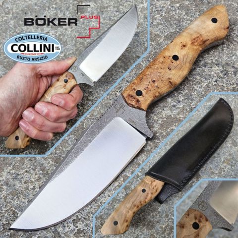 Nel buio della natura selvaggia, la notte affina i sensi: i suoni diventano più nitidi, le ombre più profonde e persino l’aria sembra carica di profumi e sensazioni. È proprio questa connessione con l’ambiente naturale e questo stato di maggiore consapevolezza che il coltellinaio custom Florian Prößl (FP Knives) ha saputo catturare nel Boker Plus Overnighter. Progettato come affidabile compagno per il bushcraft, questo coltello a lama fissa presenta una robusta lama Clippoint in acciaio D2, resistente all’usura, con finitura bicolore dall’aspetto deciso e funzionale. La costruzione full-tang garantisce la massima stabilità durante le attività più impegnative, come il taglio, l’intaglio o il batoning, rendendolo uno strumento ideale per la preparazione della legna e le attività outdoor. Le guancette ergonomiche del manico sono realizzate in radica di legno naturale, marrone chiaro, e fissate saldamente al codolo. Questo assicura una presa comoda e sicura in ogni condizione, conferendo a