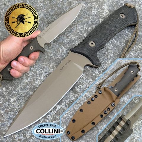 Lo Spartan Harsey Difensa è un fixed blade progettato da William W. Harsey Jr. che affonda le sue radici nella storia militare della Seconda Guerra Mondiale, richiamando la Battaglia di Monte La Difensa e la collaborazione tra forze speciali statunitensi e canadesi. Questo coltello nasce come strumento operativo moderno, concepito per integrare capacità tattiche e di sopravvivenza in un’unica piattaforma affidabile. La costruzione full tang, l’utilizzo dell’acciaio CPM MagnaCut ad alte prestazioni e la geometria spear point con affilatura flat garantiscono penetrazione, controllo e resistenza in scenari complessi. La manicatura in micarta 3D lavorata offre presa stabile anche in condizioni critiche, rendendolo una scelta concreta per utilizzo professionale, outdoor avanzato e collezionismo tecnico. Destinazione d'uso: Tattico - survival - outdoor Tipo di produzione: IndustrialePaese di produzione: USALama: CPM MagnaCut (61-63 HRC)Finitura lama: ZrN Flat Dark Earth (