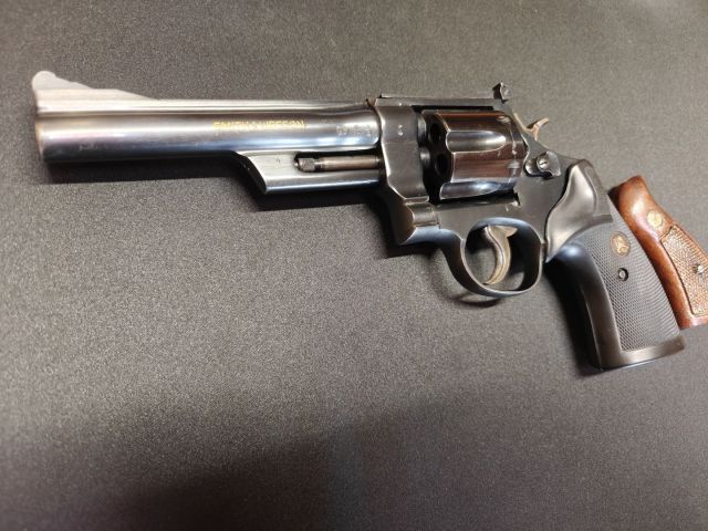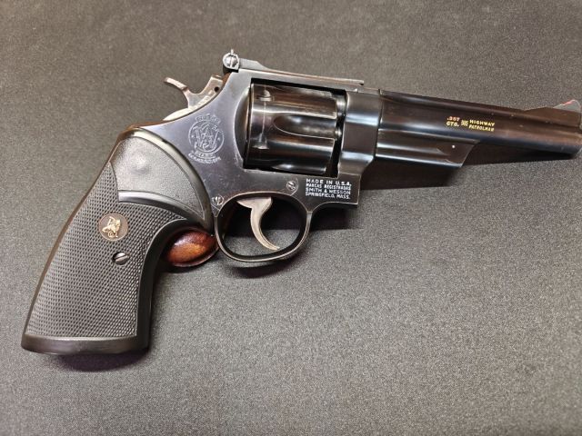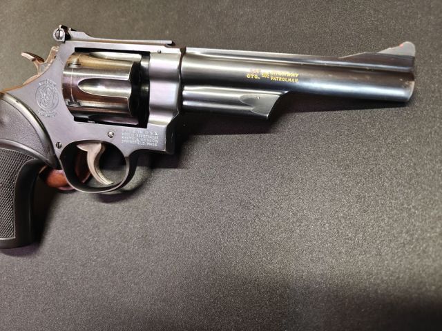 Vendo revolver Smith & Wesson mod. 28 Highway Patrolman canna da 6 pollici, cal. 357 magnum, tamburo 6 colpi, completo di guancette pachmayr in gomma e originali S&W in legno.