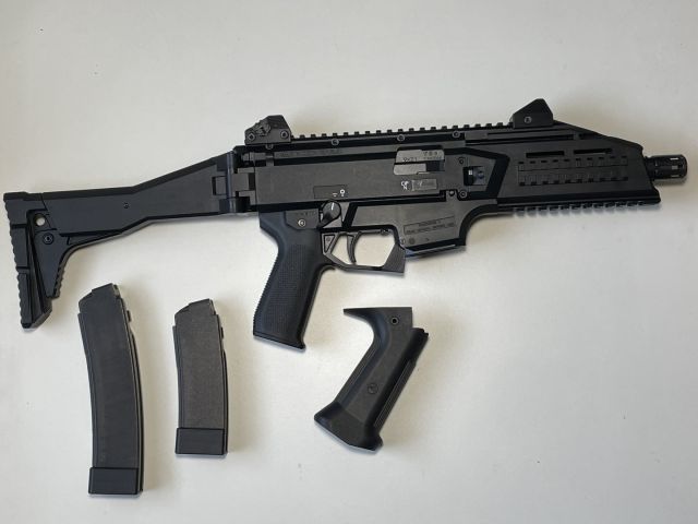 Bellissima Scorpion evo2 s1 calibro 9x21, completa di valigetta, impugnatura originale più impugnatura MagPul, un caricatore da 20 e uno da 25.