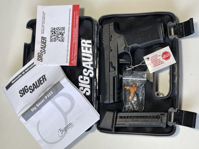 Vendo Sig Sauer P322 praticamente nuova, calibro 22 lr canna 4”, completa di valigetta, due caricatori da 20 colpi e kit originale Sig Sauer.