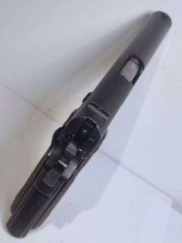 PISTOLA SPORTIVA CAL. 45 ACP, 1970, SPLENDIDA BRUNITURA LUCIDA COLT CON MINIMI SEGNI D'USO, GUANCETTE PLASTICA DELL'EPOCA CON CAVALLINO COLT, IN OTTIME CONDIZIONI CON CANNA PERFETTA. E' UNA DELLE ULTIMISSIME 1911 GOVERNMENT PRE SERIE 70.