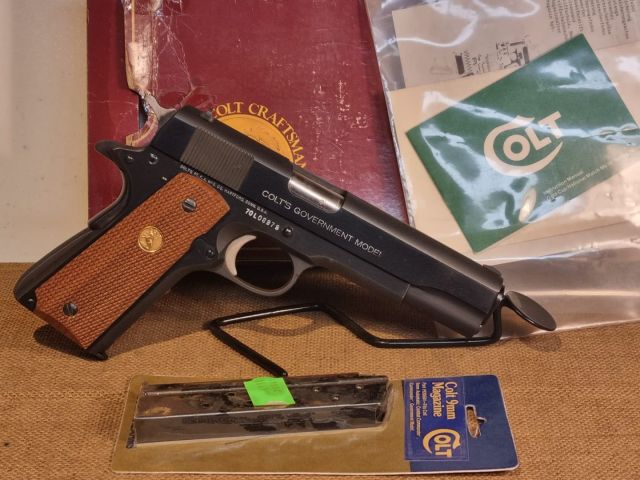 PISTOLA SPORTIVA CAL. 9X19, 1971, BRUNITURA ROYAL BLUE, SEMINUOVA SENZA SEGNI DI PORTO, SCATOLA COLT, DOCUMENTI E CARICATORE SCORTA. - codice 5914