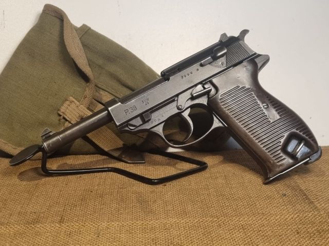 PISTOLA SPORTIVA CAL.9X19, PROD MAUSER 1945 CON ASSEMBLAGGIO SOTTO OCCUPAZIONE FRANCESE -STELLINA CARRELLO LATO DX- QUINDI SENZA WAA. COMPLETAMENTE MONOMATRICOLA CON CANNA PERFETTA E GUANCETTE IN ALLUMINIO. CONDIZIONI SEMINUOVA. FONDINA IN TELA.
