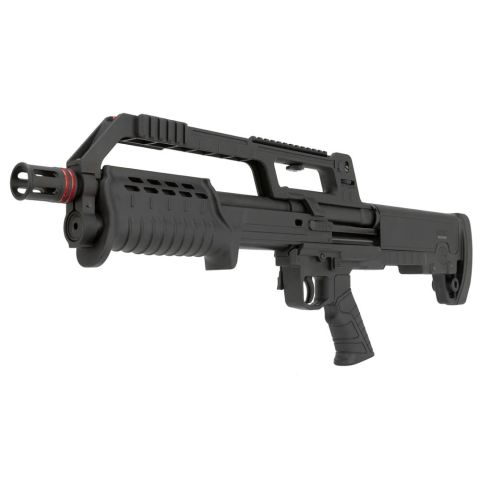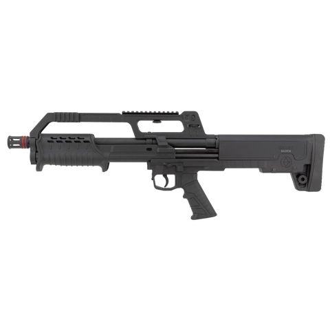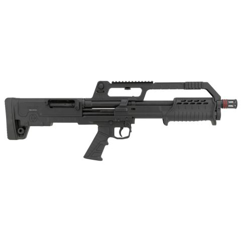 Fucile a pompa bullpup in calibro 12/76. Già predisposto con scina Picatinny per offrire il massimo della versatilità. Mira integrata regolabile, sicura a bottone, Slitta picatinny per il montaggio di accessori. 5 colpi nel serbatoio+1 in canna. Arma classificata caccia. Lunghezza canna 46cm, lunghezza totale arma 67, peso 3kg VERSIONE CON FRENO DI BOCCA FORNITO DI SERIE