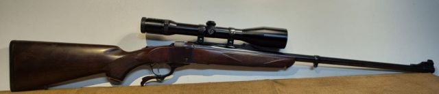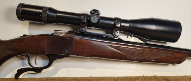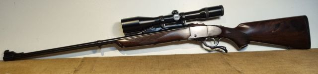 CARABINA CACCIA CAL. 300 WIN. MAG., 1999, MONOCOLPO A BLOCCO CADENTE, STECHER, CANNA CM. 66, MIRE METALLICHE, MONTATO CON ANELLI RUGER E ZEISS VARIABILE 2,5-10X48 CON RET.1, CANNA E MECCANICA PERFETTE, LEGNI E BRUNITURA OTTIMI SENZA SEGNI NE' GRAFFI, CON MINIMI SEGNI D'USO. SEMINUOVO.