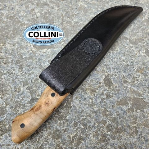 Nel buio della natura selvaggia, la notte affina i sensi: i suoni diventano più nitidi, le ombre più profonde e persino l’aria sembra carica di profumi e sensazioni. È proprio questa connessione con l’ambiente naturale e questo stato di maggiore consapevolezza che il coltellinaio custom Florian Prößl (FP Knives) ha saputo catturare nel Boker Plus Overnighter. Progettato come affidabile compagno per il bushcraft, questo coltello a lama fissa presenta una robusta lama Clippoint in acciaio D2, resistente all’usura, con finitura bicolore dall’aspetto deciso e funzionale. La costruzione full-tang garantisce la massima stabilità durante le attività più impegnative, come il taglio, l’intaglio o il batoning, rendendolo uno strumento ideale per la preparazione della legna e le attività outdoor. Le guancette ergonomiche del manico sono realizzate in radica di legno naturale, marrone chiaro, e fissate saldamente al codolo. Questo assicura una presa comoda e sicura in ogni condizione, conferendo a